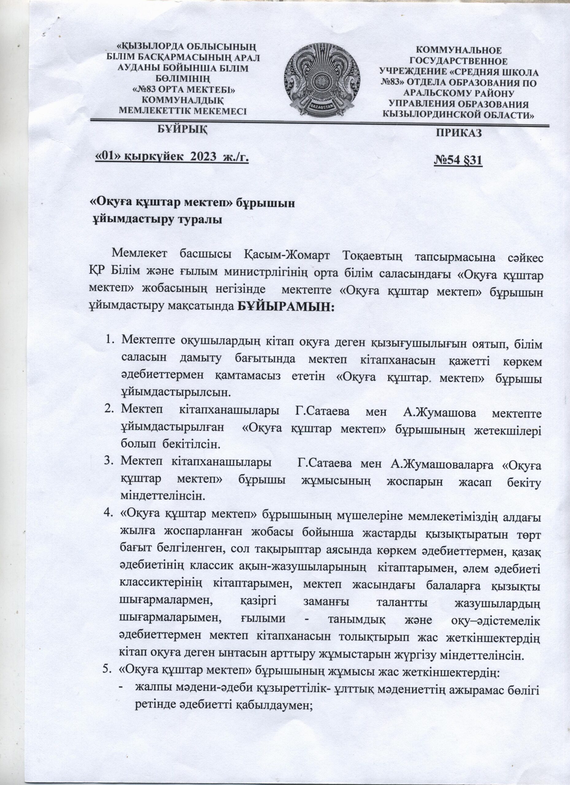 «Қызылорда облысының білім басқармасының Арал ауданы бойынша білім бөлімінің «№83 орта мектебі» коммуналдық мемлекеттік мекемесі